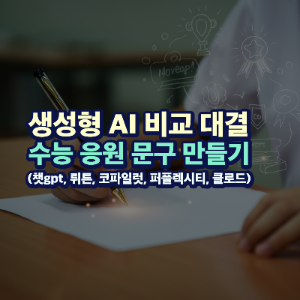 챗gpt, 퍼플렉시티 ai, 클로드 ai, 뤼튼, 코파일럿까지 요즘 잘 나가는 생성형 AI를 이용해 수능 응원 문구를 만들어 봤습니다. 과연, 5개의 생성형 AI가 만든 수능 응원 문구는 어떻게 나왔을까요?
