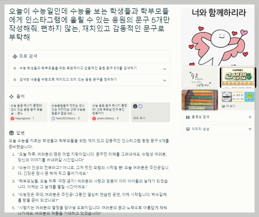 글쓰기에 가장 좋은 AI?(챗GPT, 퍼플렉시티, 클로드, 뤼튼, 코파일럿 수능 응원 문구 만들기 대결)