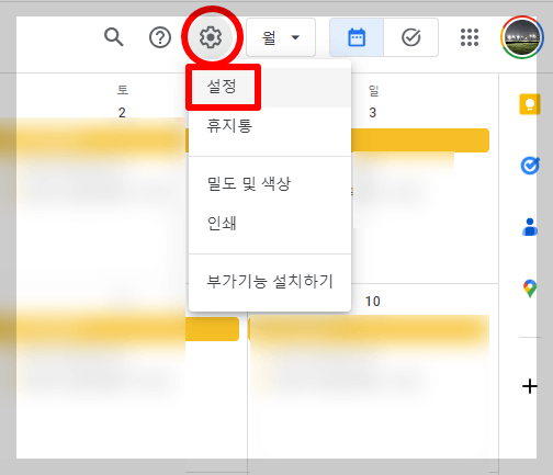 구글 캘린더 오른쪽 상단에 있는 톱니 바퀴 모양을 클릭해서 설정을 열어주세요. 여기서, '캘린더 추가 → 새 캘린더 만들기'를 해서 새 캘린더 이름에 '네이버'를 입력하고 '캘린더 만들기'를 클릭하시면 됩니다.