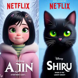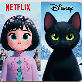 다음은, 한글 프롬프트는 어떻게 만들까 궁금해서 한글로 입력해 만든 무료 AI 애니메이션 영화 포스터입니다. 이번에는 픽사 대신에 '넷플릭스'와 '디즈니' 로고를 입력해 만들어 달라고 했는데요.