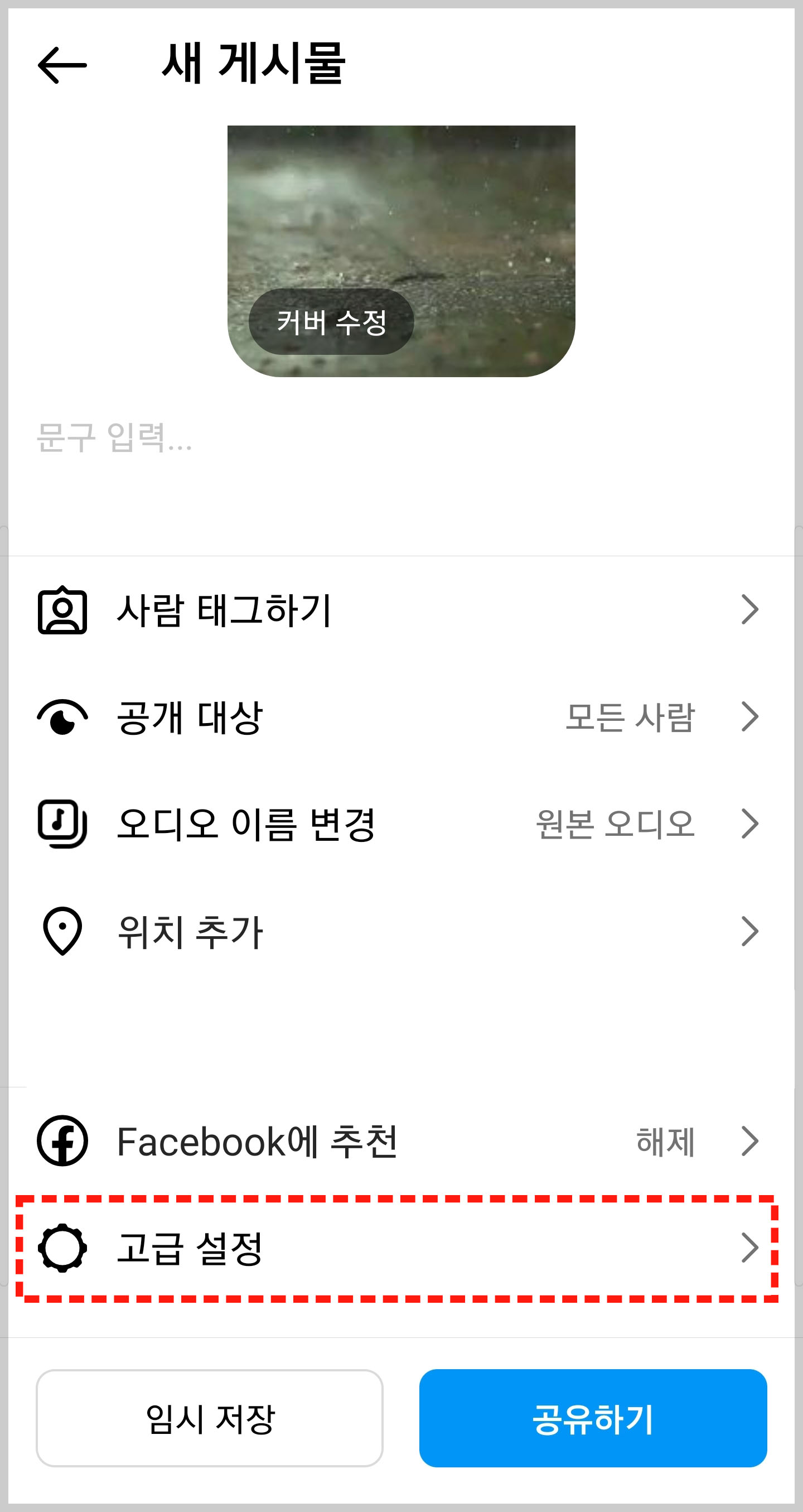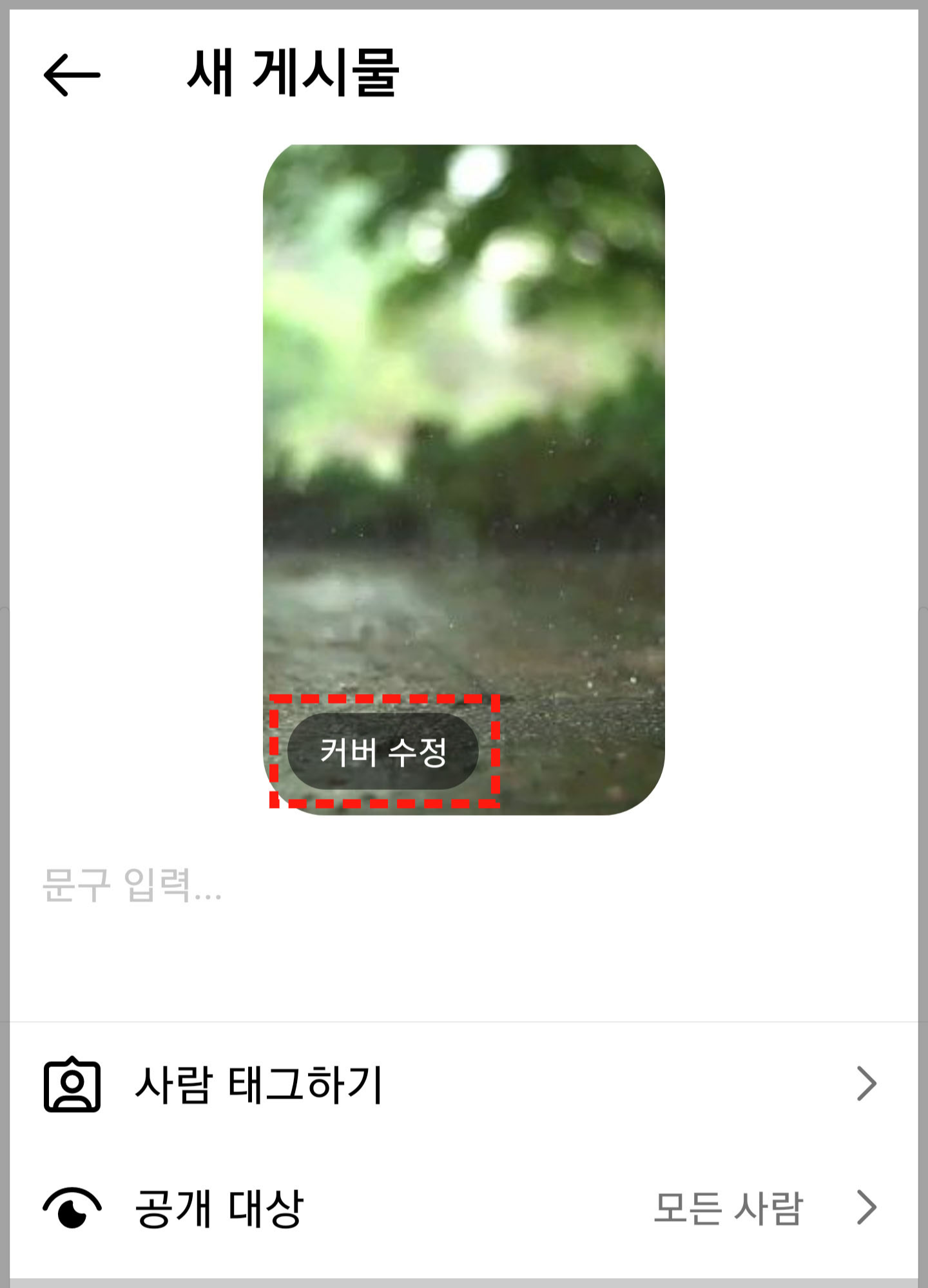 인스타그램 릴스 게시물을 업로드하기 전, 올릴 게시물 하단을 보면 "커버 수정"이라고 글씨를 확인하실 수 있습니다. 이 글씨를, 클릭하면 내가 올린 릴스 영상 중 원하는 이미지를 커버로 지정할 수가 있습니다.