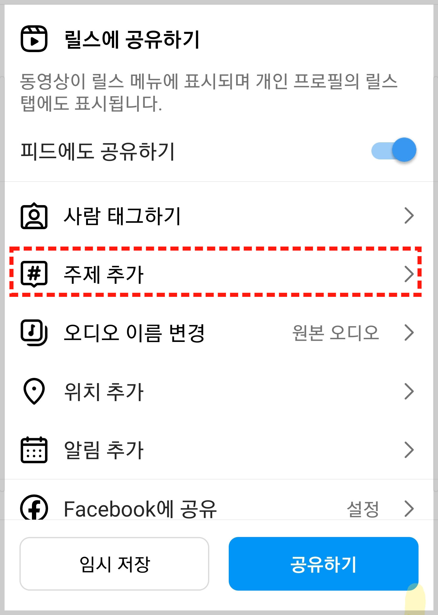7. 인스타그램 주제 추가