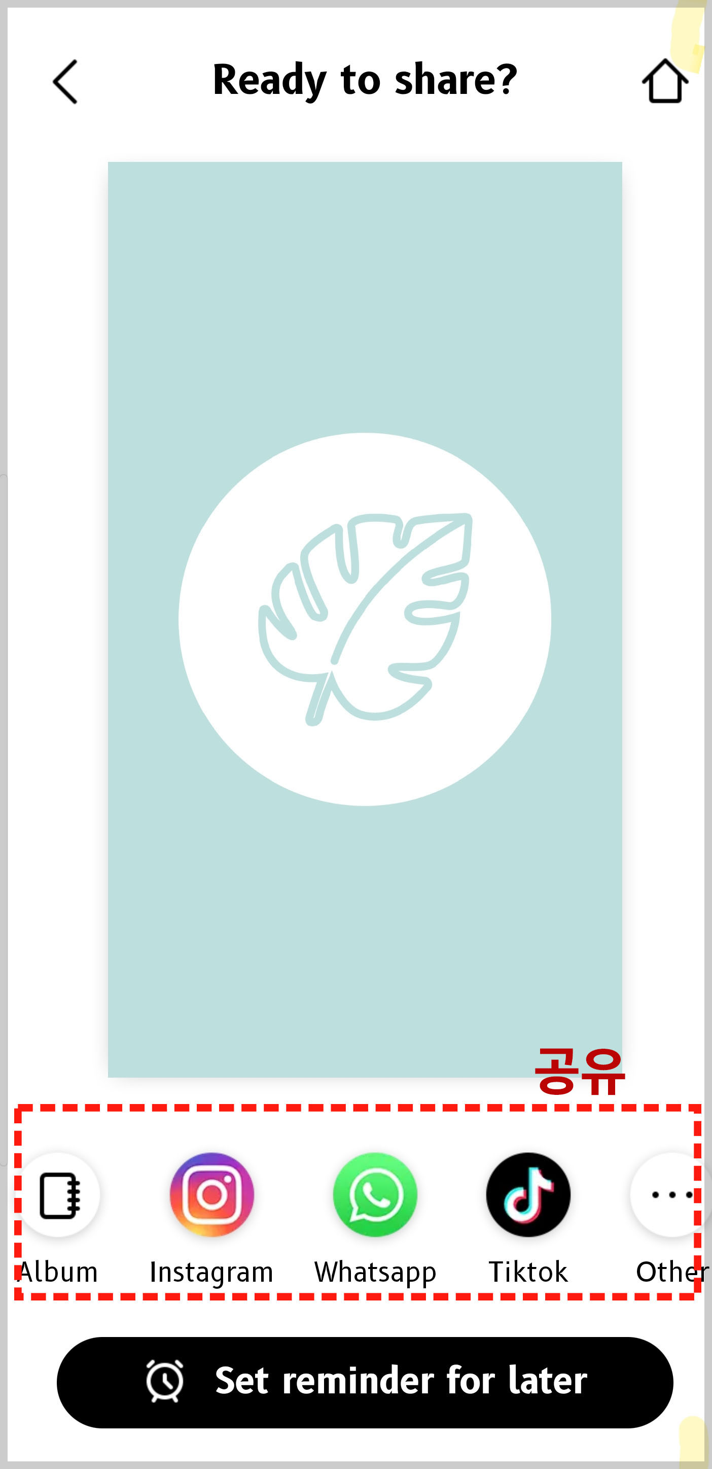 6. 공유 - 앨범이나 인스타그램, 틱톡, 카카오톡에 공유할 수 있습니다.