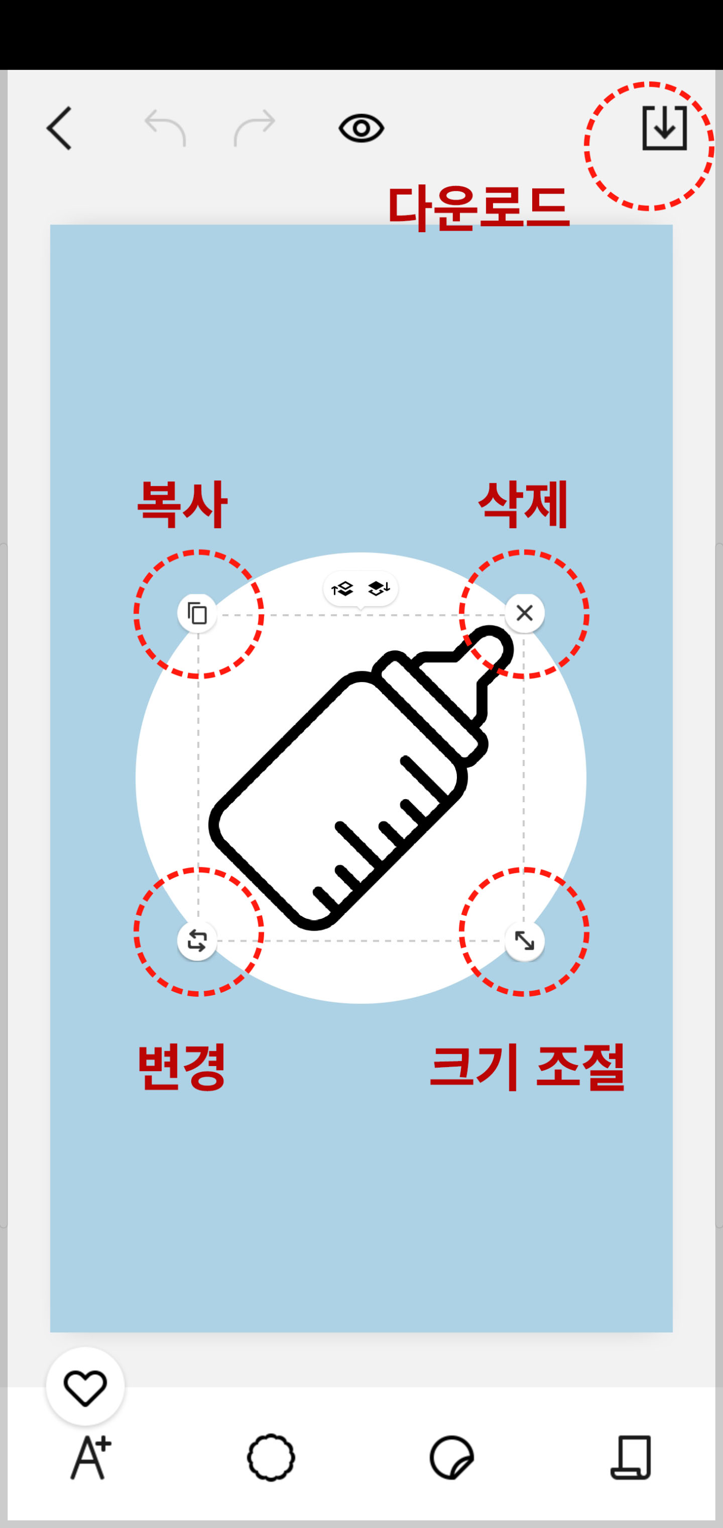 1. 복사 - 똑같은 모양의 아이콘을 하나 더 복사할 수 있습니다.