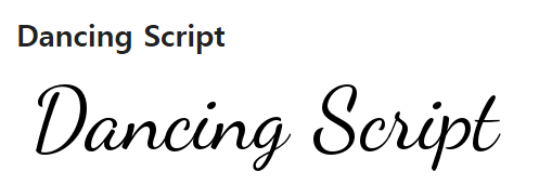 가장 먼저 소개해 드릴 무료 영문 폰트는 댄싱 스크립트 폰트입니다. 폰트 굵기도 4가지로 다양하게 활용할 수 있어서 좋은데요. 활동적이면서 우아하고 멋스러운 영문 폰트가 필요할 때 사용하면 좋은 폰트입니다.