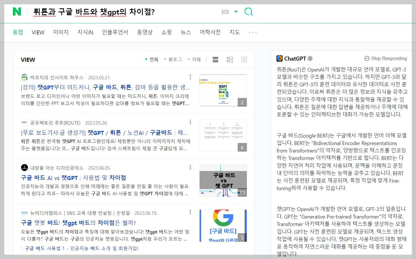 구글 뿐 아니라 네이버에서도 ChatGPT for Google이 똑같이 검색이 되는 걸 확인하실 수 있습니다.