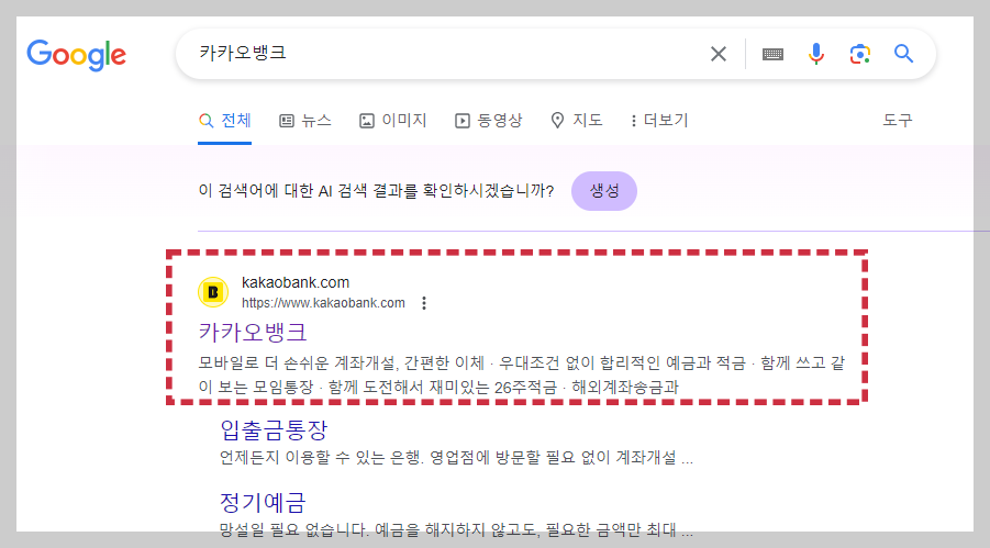 증명서를 PC에서 출력하기 위해서, 카카오뱅크 PC 버전을 사용해야 합니다. PC에서 카카오뱅크를 검색해 클릭해 주세요.