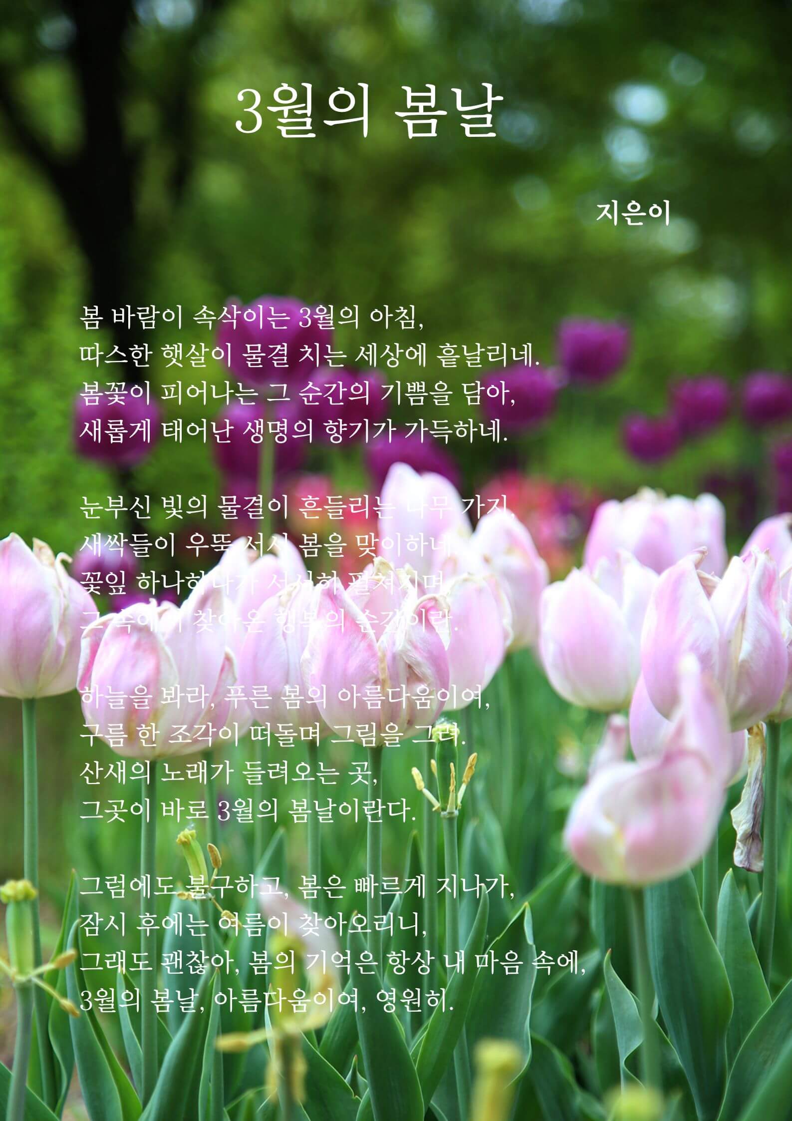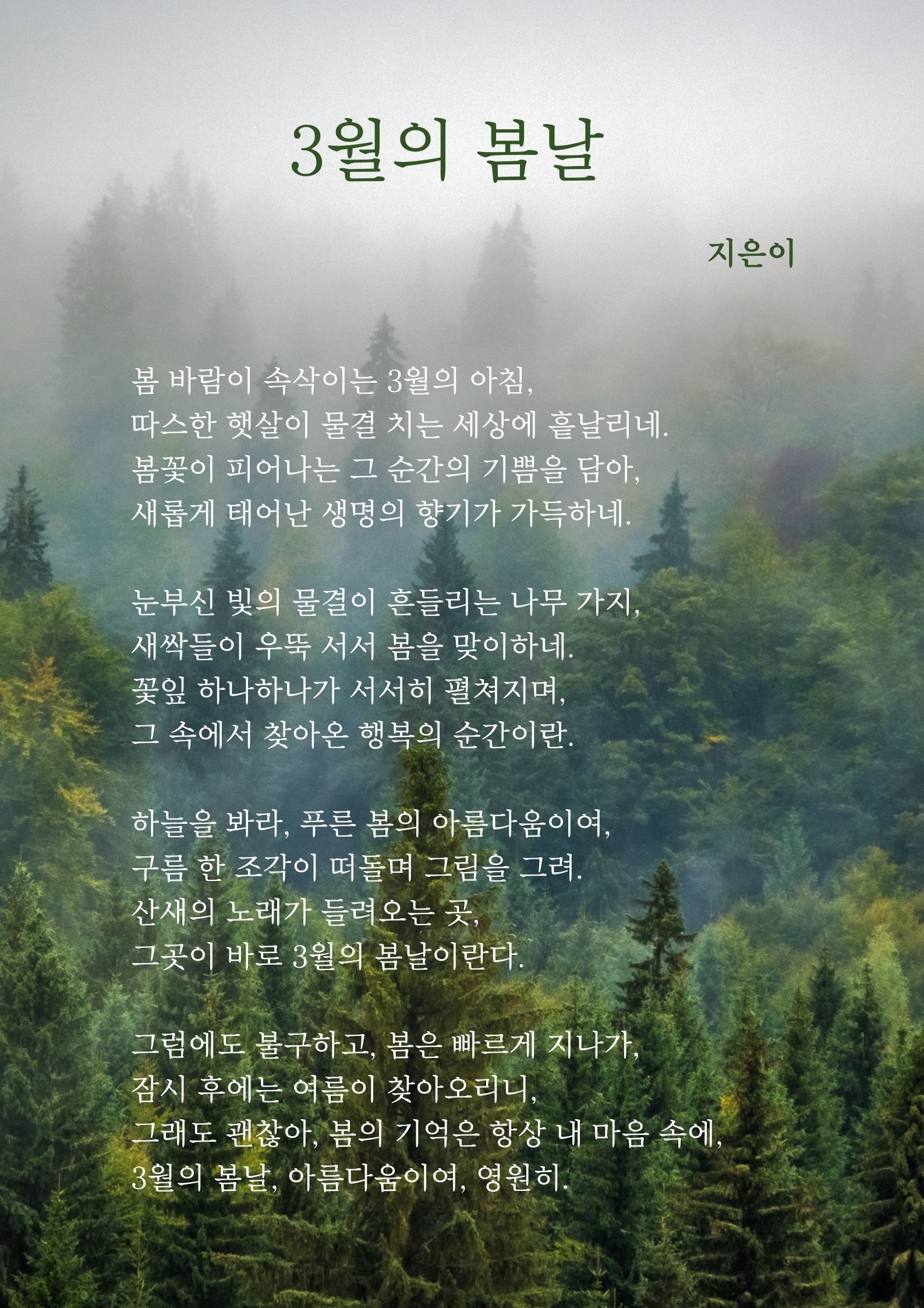 저는, 뤼튼 AI를 이용해 '3월의 봄날'이라는 시를 작성을 했고요. 이에 어울리는 배경 이미지를 찾기 위해, '봄배경' 이라는 키워드를 입력했습니다.