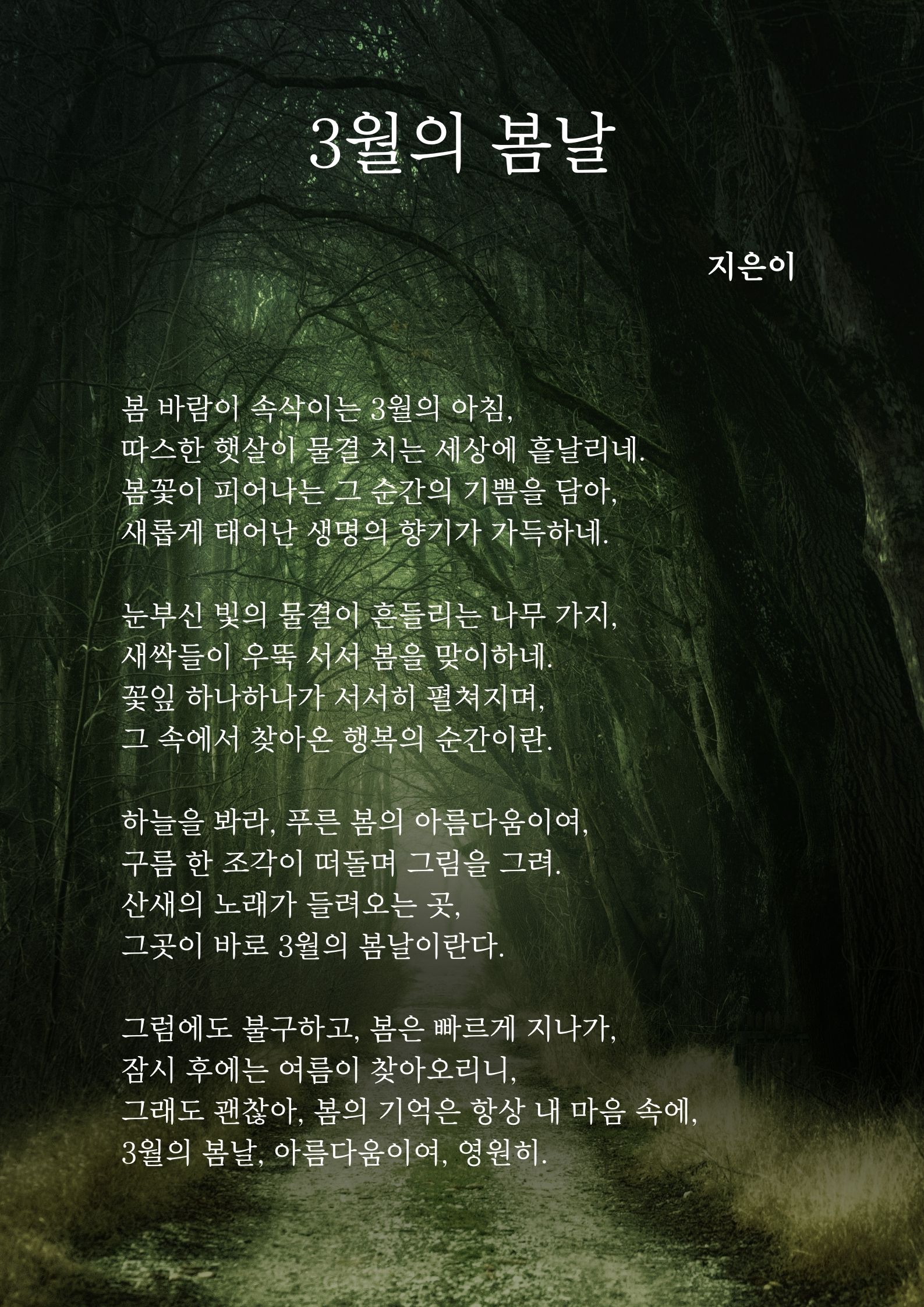 만약, 시화전 배경으로 원본 사진을 사용한다면 그대로 사용하기보다는 사진 위에 흰색이나 검정의 사각 도형을 이용해 투명도를 조절한 배경을 만들어 사용해 보세요.