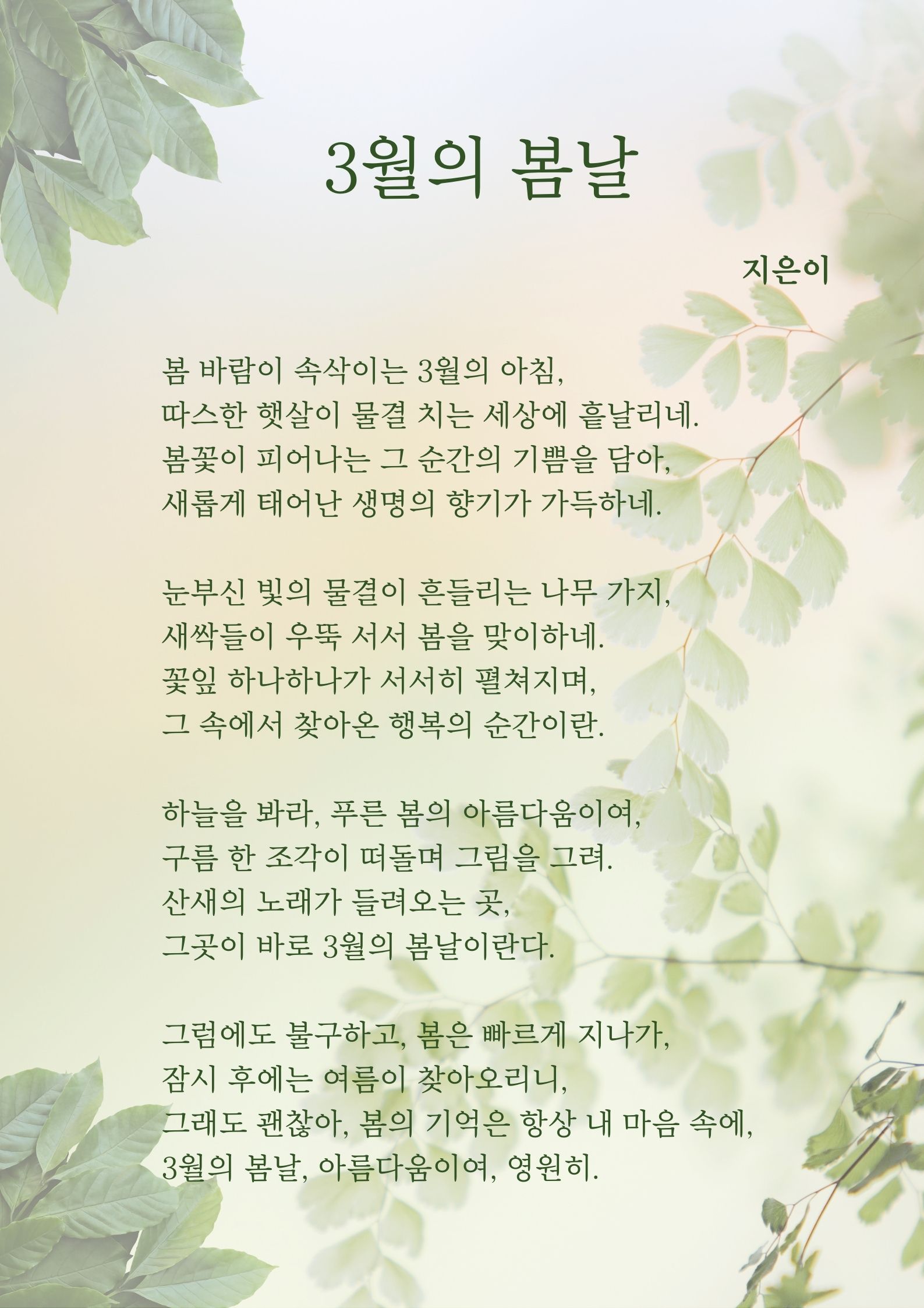 이렇게, 캔바 무료 버전으로 만들어 본 시화전 포스터 샘플입니다.