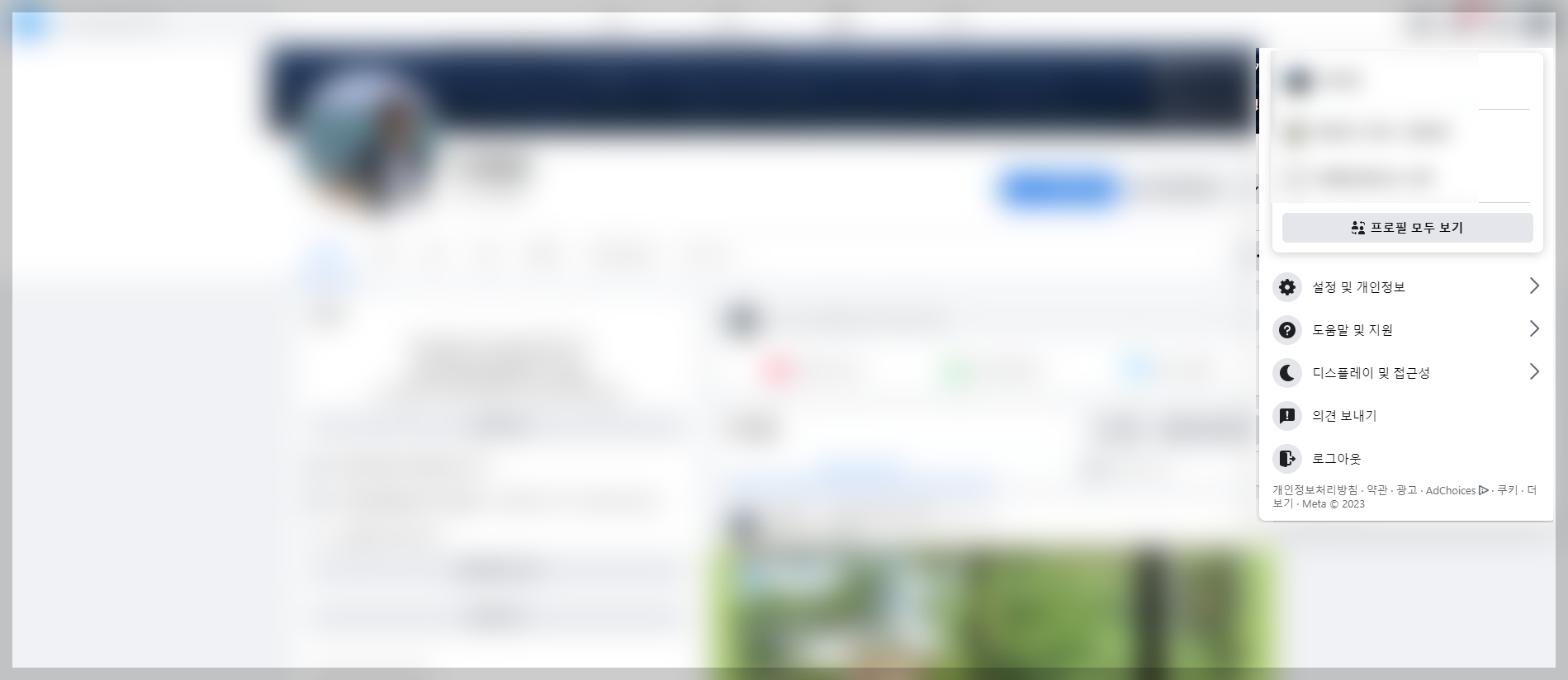 먼저, PC에서 페이스북에 접속해 주세요. 오른쪽 상단, 가장 위에 내 프로필 사진을 클릭 → "설정 및 개인정보" → "설정" 클릭!