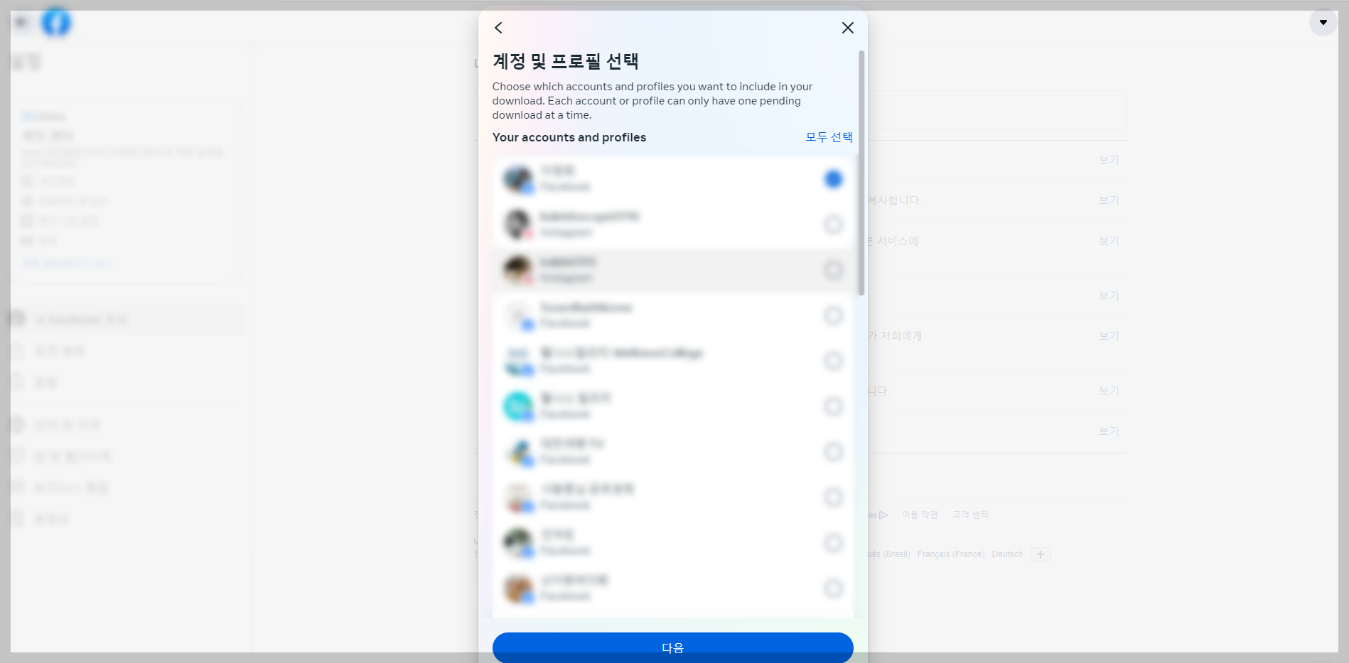 페이스북 계정이나 페이지를 여러 개 운영하고 계시는 분은, 여기에서 어떤 계정을 할 것인지 선택하시면 됩니다. 당연히, 페이스북 페이지 백업도 됩니다.
