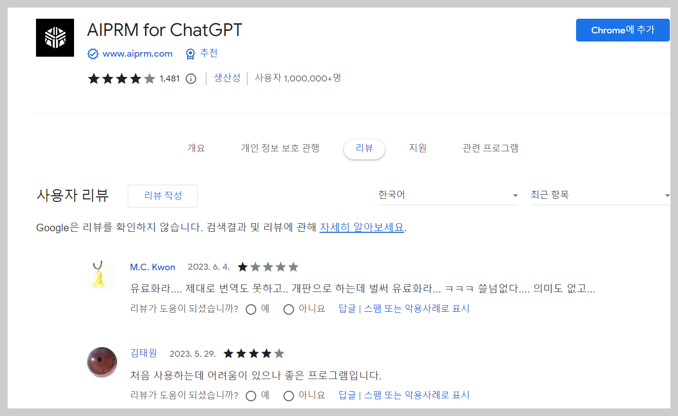 1. 확장프로그램을 다운로드하기 전, 사용자 리뷰와 평점을 반드시 확인!