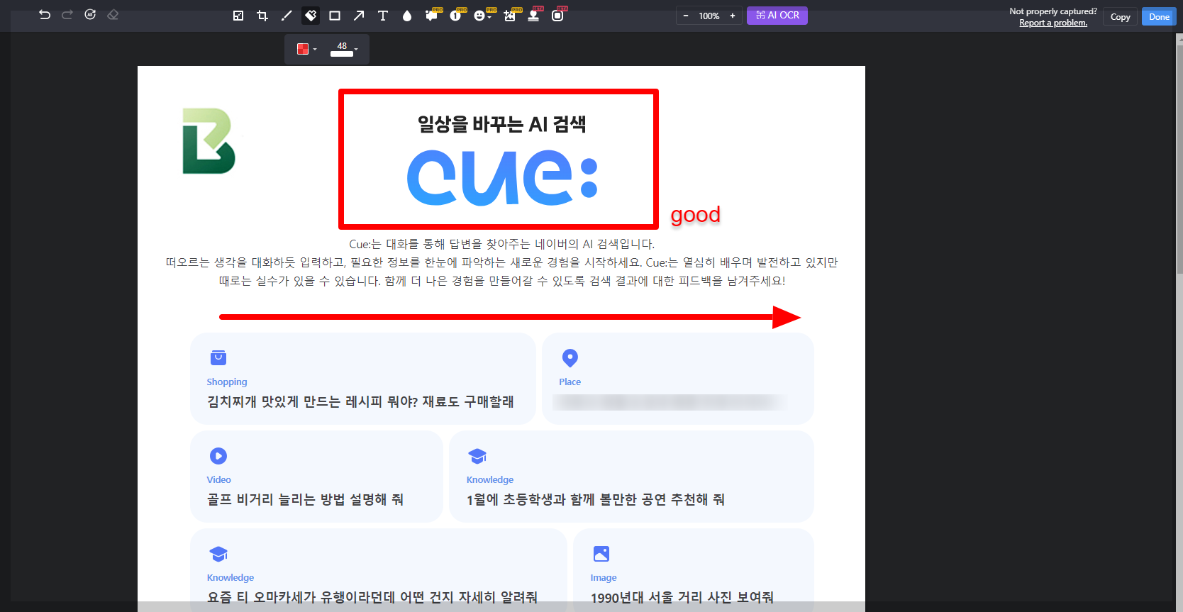 형광펜, 사각형과 동그라미 박스, 텍스트, 화살표, 펜, 흐림 효과, 워터마크 삽입, 테두리 등 그동안 캡처를 한 후에 포토샵에서 해야 했던 후 작업들이 캡처한 프로그램 화면에서 전부 할 수 있었는데요.