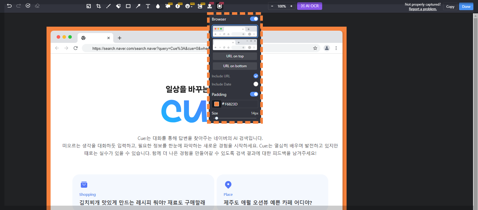 다만, PC 화면 전체를 스크롤해서 캡쳐하는 기능이 없어 불편했는데요.