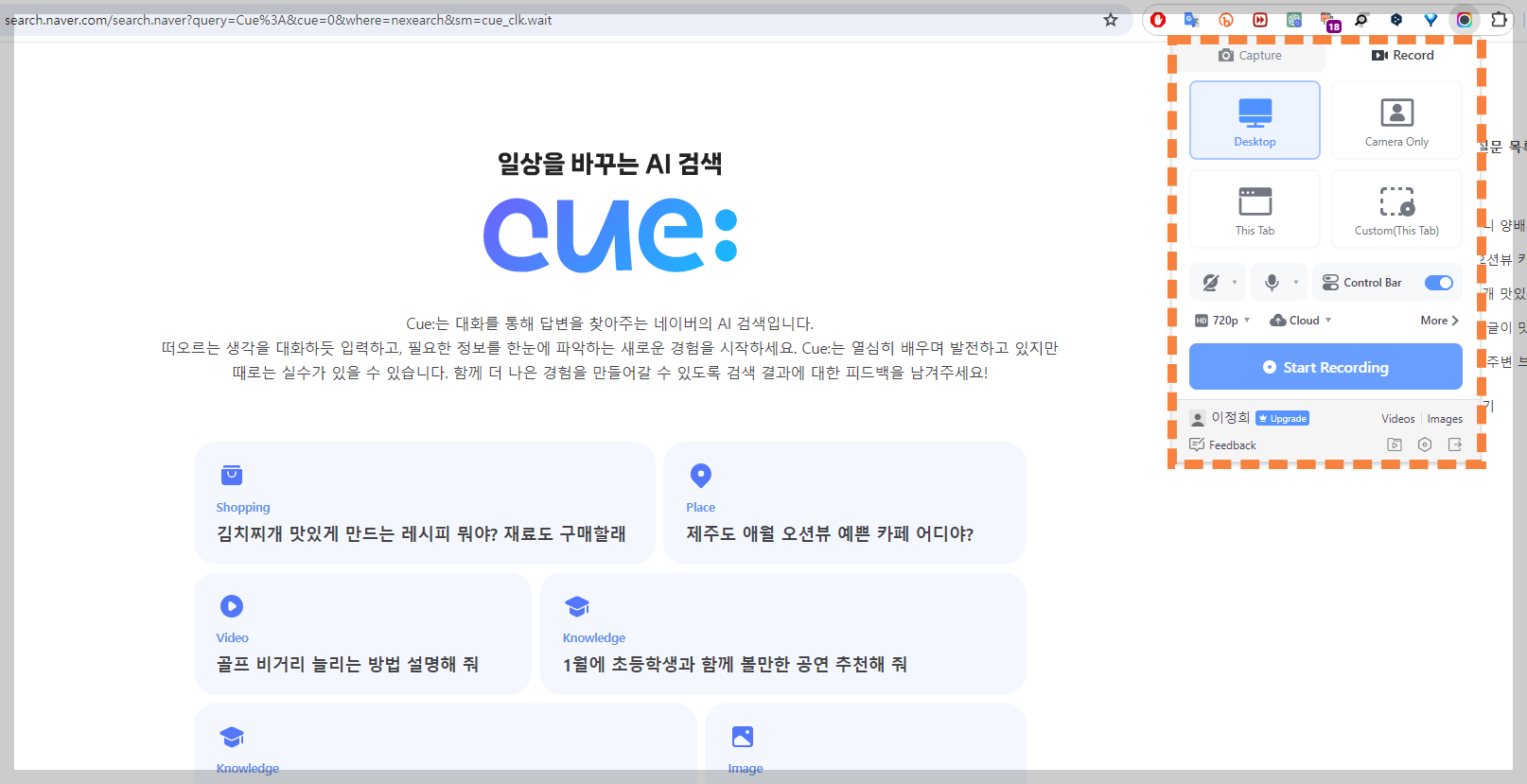 화면 녹화는, 데스크탑 화면 전체를 녹화하던지 아니면 사용자 지정 등 4가지 옵션중에서 선택할 수 있어 그 또한 부족함 없이 훌륭했습니다. 아마도, 이 확장 프로그램은 드래그프리와 프롬프트 지니와 함께 제가 구글 확장 프로그램에서 가장 많이 사용하게 되지 않을까 생각합니다.